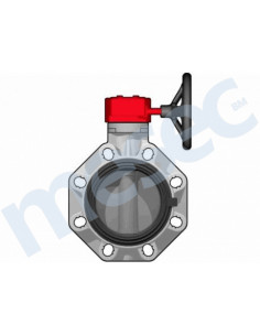 FK, dušilne lopute, vgradnja med prirobnice, PVC-U loputa, PP/FPR ohišje