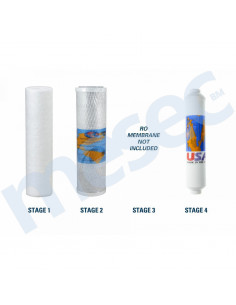 RO-4 set vključuje filtrirne vložke za redni servis hišnih sistemov za čiščenje pitne vode z reverzno osmozo RO. Kompatibilen je z vsemi klasičnimi sistemi reverzne osmoze. RO-4 set vključuje: * Polipropilenski mehanski filtrirni vložek PP-1 Melt-Blown, FDA certificiran, zagotavlja učinkovito zaščito pred v vodi netopnimi delci kot so pesek, mivka, vodna...