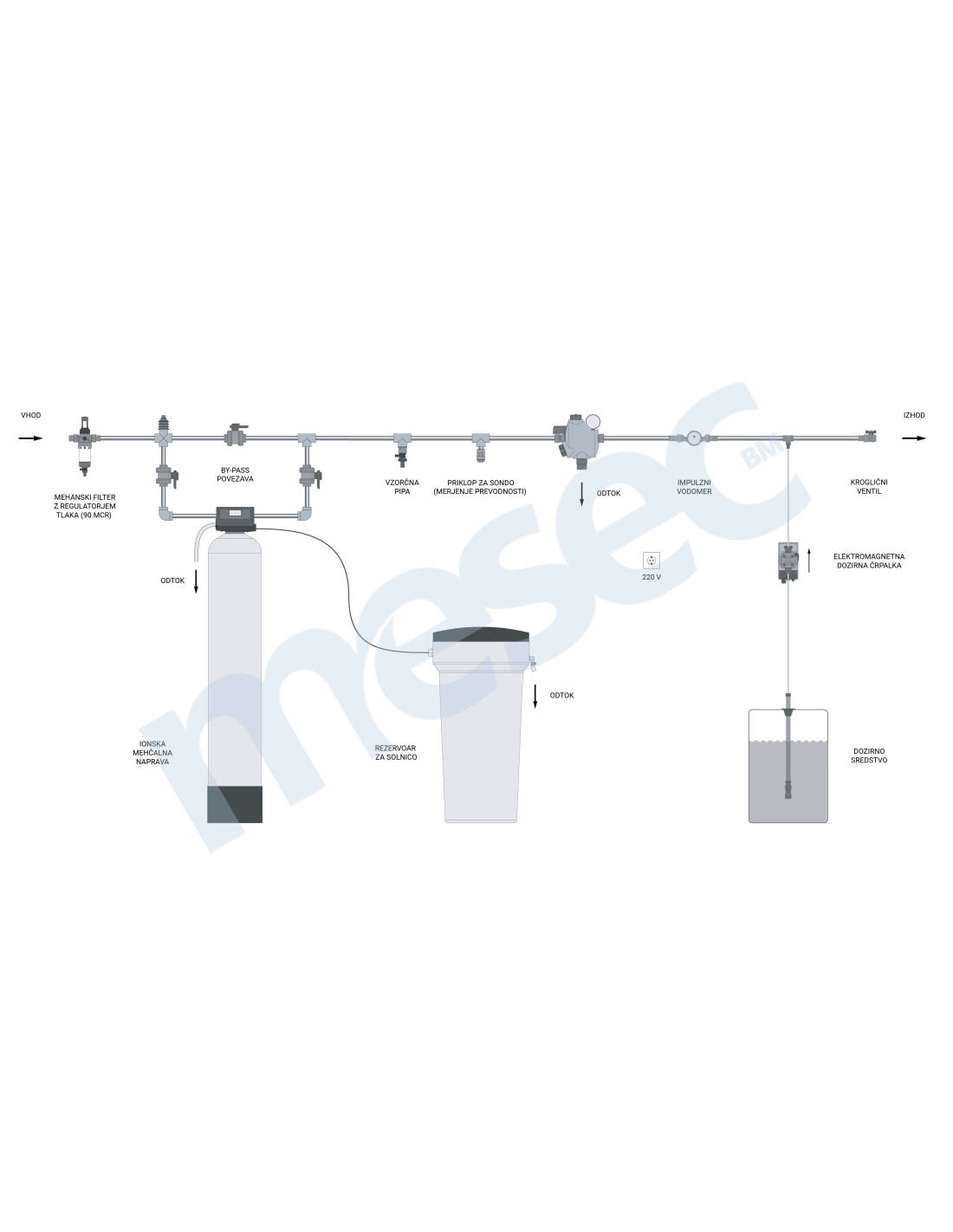 - Priključek VHOD/IZHOD za ionsko mehčalno napravo MESEC M50 L65,