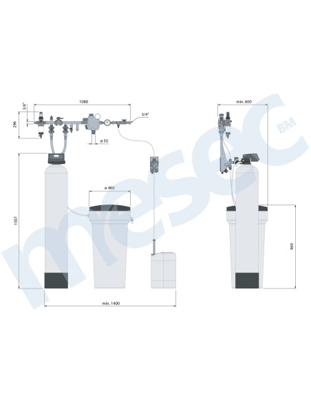 - Mehčalna naprava M50 L65, set za merjenje trdote vode, tabletirana sol za regeneracijo (25kg), cevne povezave za priklop mehčalne naprave,